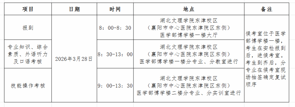 根据《湖北文理学院2026年硕士研究生招生复试录取工作方案》要求,本着坚持“按需招生、择优录取、宁缺毋滥”的基本原则,以提高研究生选拔质量为目标,结合医学部工作实际,制定本细则: