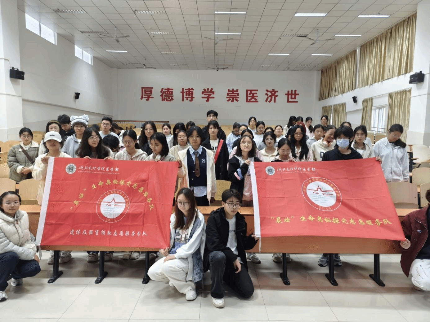 (医学部 通讯员 梅哲心)2025年10月19日下午两点,一场凝聚爱心力量的“三献”宣讲活动在医学楼隆重举行。本次活动由“襄烛”生命奥秘探究志愿服务队精心策划,面向经济管理学院的同学普及“三献”知识,弘扬无私奉献的崇高品德。活动开场,宣讲人以专业严谨的态度,为同学们系统讲解了“三献”的具体内容和深远意义。通过展示详实的数据和感人的案例视频,生动展现了捐献行为对患者生命的重要价值,让现场师生深受震撼。在互动答疑环节,同学们踊跃发言,就捐献的成本效益、社会影响等问题与宣讲人展开热烈讨论,宣讲人凭借丰富的知识储备,为同学们进行了全面细致的解答。经济管理学院的师生们积极参与互动,现场气氛热烈非凡。许多同学表示,这次宣讲让他们对“三献”有了更深刻的认知,他们愿意成为“三献”事业的支持者和推动者。宣讲活动落下帷幕后,同学们怀着敬畏之心前往生命科学馆参观学习。踏入生命科学馆,各式各样的展品和珍贵的人体标本让同学们大开眼界。在专业讲解员的引导下,大家逐一参观了各个展区。在人体解剖展区,真实的人体器官标本让同学们对人体的内部构造有了更直观的认识,讲解员深入浅出的讲解,让抽象的生理知识变得具体易懂。一位同学在参观后说道:“这次经历让我受益匪浅,不仅学到了丰富的生命科学知识,更让我懂得了奉献的意义。”此次活动的成功举办,不仅增进了同学们对“三献”知识的了解,更在青年学子心中树立了尊重生命、乐于奉献的价值观,为校园精神文明建设增添了浓墨重彩的一笔。